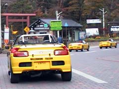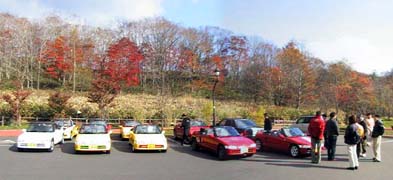 | あまざんさんは本日も耳当てを装備して、 ドライブしていました。う〜ん、温かそう。 | 途中登別温泉街を抜けるのですが、道行く人たちが楽しそうに、ビート一行を見ていました。 |