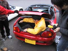 カプチーノのトランクが意外と大きそうなので、 どれくらいの容量があるのかを実験。