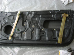 まず、パワーウィンドウのレギュレータを取り付けます。