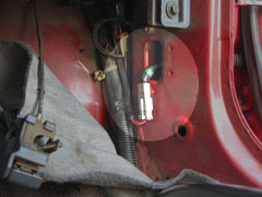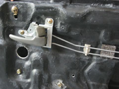 次に純正ドアを取り外すために、パワーウィンドウのケーブルを外します。