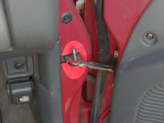 ドア取り付けボルトを外す前に、ドア チェッカを引き抜きます。