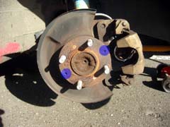 ブレーキローターに開いている穴のところに適当なネジをねじ込んでいけば外れます。