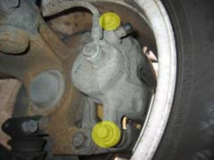 ブリーダプラグを緩めてブレーキフルードが抜けるようにしておけば、