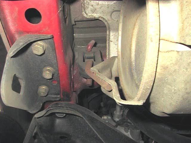 右の丸い穴の、奥に見えるのがバンパ取り付けボルト。