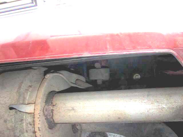 リアバンパ裏をリアフェンダから覗くと、リアバンパアッパキャップがバンパに、