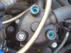 デスビの中を見てみると、エメラルドグリーンの物質が端子にこびり付いていて、