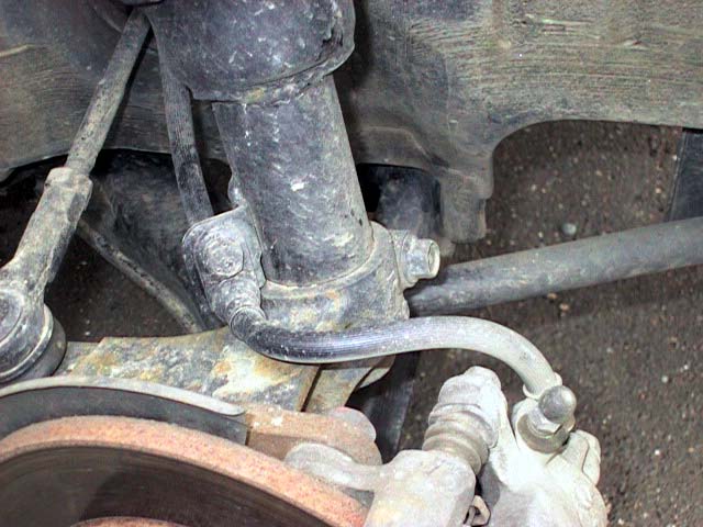 ダンパアッセンブリをナックルから抜き取る時には、ブレーキホース等に負担がかからないように
