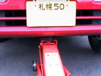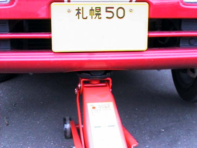 ジャッキアップのするときは、パーキングブレーキを忘れずにかけておきましょう。
