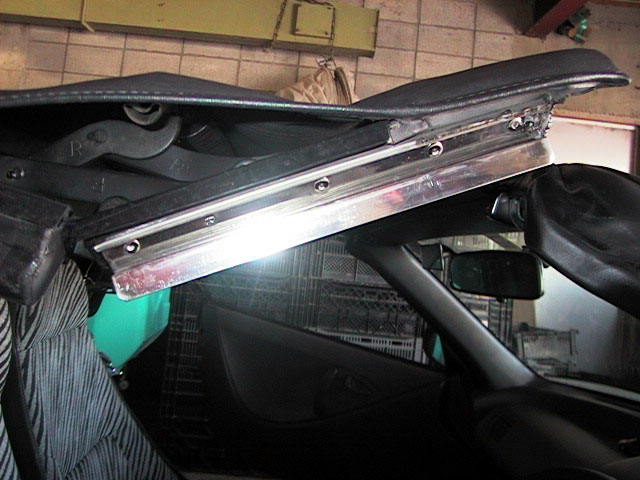 リテーナは4つのリベットで取り付けられているが、そのうちの前2つにソフトトップクロスが固定されているので、