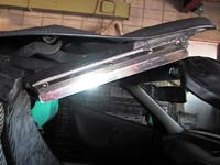 リベットを外したら、リテーナとソフトトップフレームの間から、ソフトトップクロスを引っ張り出します。
