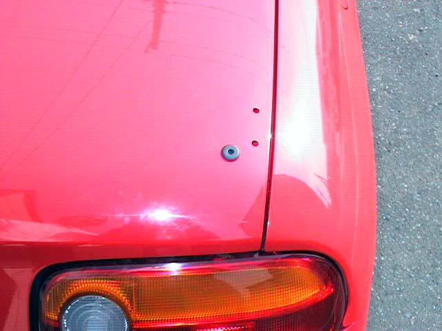 スポイラー取付用の穴のほかに、ストップランプの配線用に10mm径を開けますが、