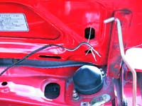 配線用に開けた10mm径の穴から針金を入れてトランクリッド裏の長穴へ出し、