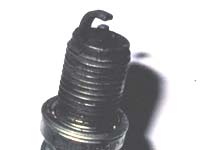 交換したスパーク プラグの電極を見ると、カーボンで真黒にくすぶっていますが、