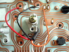 赤、黒、オレンジ、白の線を写真のところにハンダ付けします。